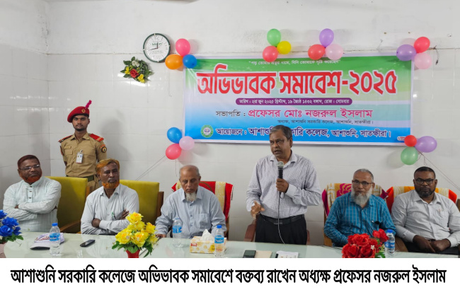 কলেজের অধ্যক্ষ প্রফেসর মোঃ নজরুল ইসলামের সভাপতিত্বে ও প্রভাষক জহুরুল ইসলামের সঞ্চালনায় সমাবেশে আলোচনা রাখেন সাতক্ষীরা সরকারি কলেজের অবঃ প্রফেসর এম এম রিয়াজ উদ্দীন, সমাবেশের আহবায়ক মেজর মোঃ এছহাক আলী, আশাশুনি কলেজের শিক্ষক পরিষদের সাধারণ সম্পাদক প্রভাষক ছহিল উদ্দীন,প্রভাষক সজল কুমার আঢ্য,প্রভাষক রবিউল ইসলাম,অভিভাবকদের মধ্যে এস,এম আরিফুল ইসলাম,ইয়াহিয়া ইকবাল,মোশাররফ হোসেন,নিখিল মন্ডল ও শিপ্রা মন্ডল। সংগীত পরিবেশন করেন শিক্ষার্থী সুতপা মন্ডল। অনুষ্ঠানের শুরুতে পবিত্র কোরআন থেকে তেলাওয়াত করেন প্রভাষক আছমাতুল্লাহ ও গীতা থেকে পাঠ করেন প্রভাষক নিলেন্দু মুখার্জী। সবশেষে প্রশ্নোক্তর পর্বে অভিভাকদের বিভিন্ন প্রশ্নের উত্তর প্রদান করেন এবং কলেজকে ঢেলে সাজানোর পাশাপাশি শিক্ষার সার্বিক পরিবেশ উন্নত করতে পরিকল্পনা ও প্রত্যাশার কথা উল্লেখ করে সমাবেশের সমাপ্তি ঘোষণা করেন।