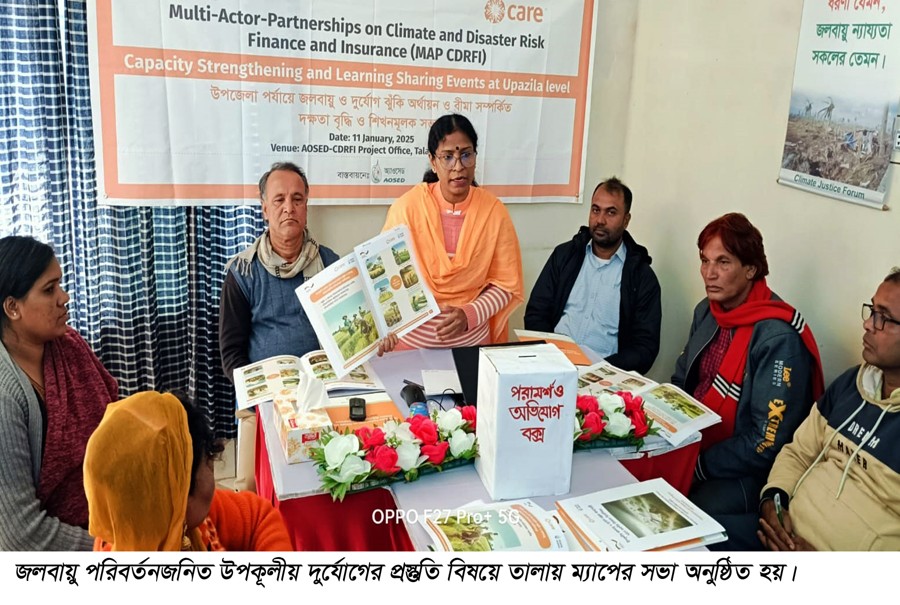 তালা প্রতিনিধি: তালা উপজলা মাল্টি অ্যাক্টর প্লাটফরম (ম্যাপ) এর আয়াজন, জলাবায়ু ও দূর্যোগ ঝুঁকির অর্থ ও বীমা সম্পর্কিত দক্ষতা বদ্ধিমূলক সভা অনুষ্ঠিত হয়ছ। অ্যাওসড এর বাস্তবায়ন এবং কয়ার বাংলাদশ এর সহযাগিতায় সিডিআরএফআই প্রকল্পর অধীন শনিবার (১১ জানুয়ারী) সকাল তালার প্রকল্প অফিস কক্ষ সভা অনুষ্ঠিত হয়।
