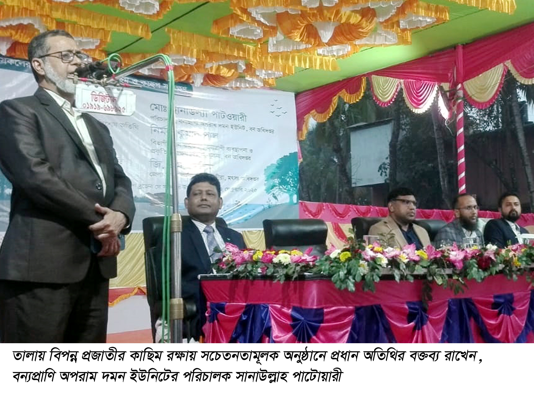এ উপলক্ষ্যে সাতক্ষীরার তালা বি. দে. সরকারি উচ্চ বিদ্যালয় মাঠে উদ্বোধনী অনুষ্ঠানে সভাপতিত্ব করেন, সাতক্ষীরা জেলা মৎস্য অফিসার জি. এম. সেলিম। অনুষ্ঠানে প্রধান অিতিথি হিসেবে বক্তব্য রাখেন, বাংলাদেশ বন অধিদপ্তরের ওয়াইল্ডলাইফ ক্রাইম কন্ট্রোল ইউনিটের পরিচালক সানাউল্লাহ পাটোয়ারী। স্বাগত বক্তব্য রাখেন, ওয়াইল্ডলাইফ কনজারভেশন সোসাইটির বাংলাদেশ নিযুক্ত কান্ট্রি ডিরেক্টর ড. মো. জাহাঙ্গীর আলম। এসময় বিশেষ অতিথির বক্তব্য রাখেন, বাংলাদেশ বন অধিদপ্তরের ওয়াইল্ডলাইফ ক্রাইম কন্ট্রোল ইউনিটের মৎস্য বিশেষজ্ঞ মফিজুর রহমান চৌধুরী, আব্দুল্লাহ আস সাদিক ও তালা উপজেলা মৎস্য অফিসার তারেক ইমাম। অনুষ্ঠান পরিচালনা করেন, ডব্লিউসিএস’র প্রকল্প সমন্বয়কারী সামিউল মহাসিন ও নাদিম।