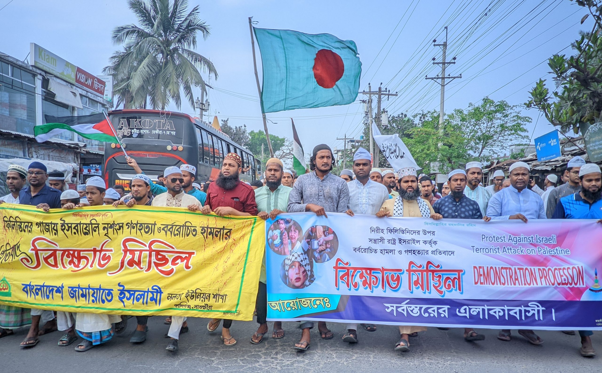কালিগঞ্জের নলতায়-ফিলিস্তিনের মুসলমানদের উপর নির্যাতন ও হামলার প্রতিবাদ মিছিল ও সমাবেশ।