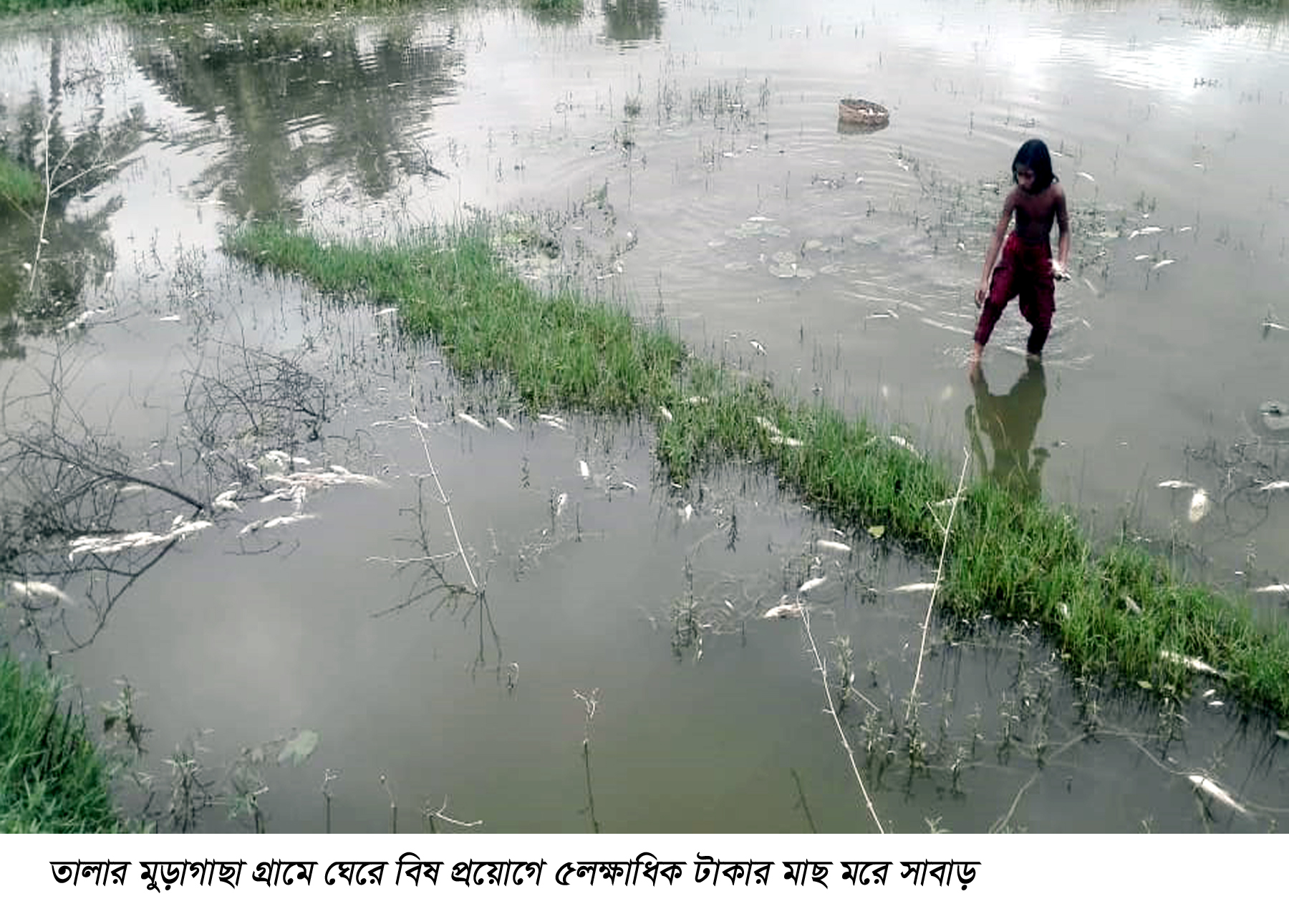 তালা প্রতিনিধি: জমি সংক্রান্ত বিরোধের জেরে তালার মুড়াগাছা (হরিহরনগর) গ্রামে মাছের ঘেরে বিষ প্রয়োগ করা হয়েছে বলে অভিযোগ উঠেছে। এঘটনায় ৩বিঘা আয়তন মাছের ঘেরের বিভিন্ন প্রজাতীর ৫লক্ষাধিক টাকার মাছ মরে সাবাড় হয়েছে। ঘটনায় ভুক্তভোগী আছাদুল ইসলাম ও তার পরিবার নিঃস্ব হয়ে পড়েছে।