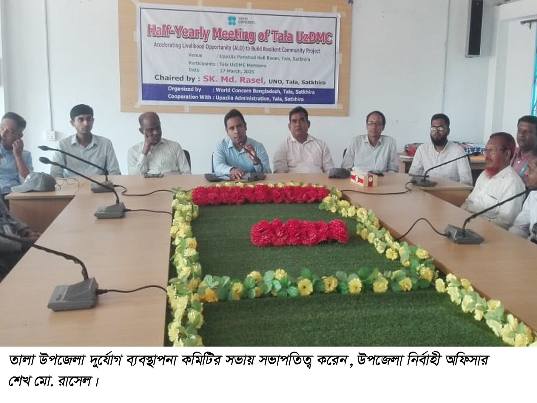 তালা প্রতিনিধি: তালা উপজেলা দুর্যোগ ব্যবস্থাপনা কমিটির ষান্মানিক সভা সোমবার (১৭ মার্চ) সকালে উপজেরা পরিষদ হলরুমে অনুষ্ঠিত হয়েছে। ওয়ার্ল্ড কনসার্ন বাংলাদেশের এক্সিলারেটিং লাইভলিহুড অপরচুনিটিস টু বিল্ড রেজিলেন্ট কমিউনিটিস (আলো) প্রকল্পের আয়োজনে এবং উপজেলা প্রশাসনের সহযোগীতায় অনুষ্ঠিত সভায় সভাপতিত্ব করেন, তালা নির্বাহী অফিসার শেখ মো. রাসেল। সভায় বক্তব্য রাখেন, উপজেলা প্রাণি সম্পদ কর্মকর্তা ডা. মাছুম বিল্লাহ, সহকারী সার্জন ডা. মনি মোহন ঘোষ, ইসলামকাটি ইউনিয়ন পরিষদ চেয়ারম্যান অধ্যাপক গোলাম ফারুক, উপজেলা প্রকল্প বাস্তবায়ন কর্মকর্তা মো. আশরাফ হোসেন, মাধ্যমিক শিক্ষা অফিসার শেখ ফিরোজ হোসেন, প্রাথমিক শিক্ষা অফিসার সাইফুল ইসলাম, খাদ্য কর্মকর্তা মো. আশরাফ হোসেন, উপজেলা সমাজ সেবা অফিসার মনোজ কান্তি রায়, প্যানেল চেয়ারম্যান মো. শফিকুল ইসলাম, শেখ মাসুদ, রেজাউল করিম ও মিল অফিসার সৈয়দ আলম প্রমুখ।