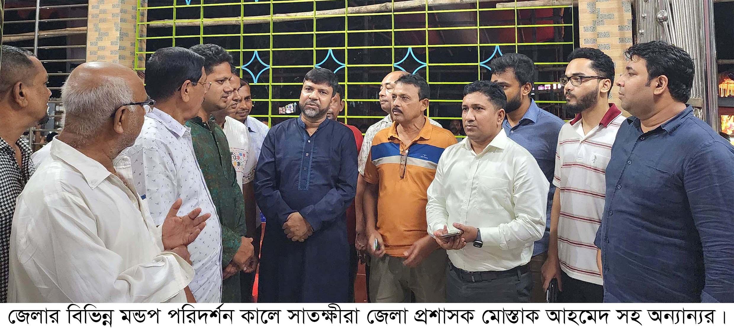 শনিবার বিকালে জেলার দেবহাটা উপজেলার বিভিন্ন পূজা মন্ডপ পরিদর্শন কালে জেলা প্রশাসক মোস্তাক আহমেদ মন্ডপ কমিটির নেতৃবৃন্দদের সাথে মতবিনিয়ম করেন। সেই সাথে নিরাপত্তা বিষয়ক খোঁজ খবর নেন তিনি। এসময় উপস্থিত ছিলেন উপজেলা নির্বাহী অফিসার মো. আসাদুজ্জামান, পূজা উৎযাপন কমিটির ভারপ্রাপ্ত সভাপতি অজয় কুমার সহ বিভিন্ন পর্যয়ের কর্মকর্তা, নির্বাহী ম্যাজিস্টেট, ধর্মীয় নেতা, পূজা উৎযাপন কমিটির নেতৃবৃন্দরা।