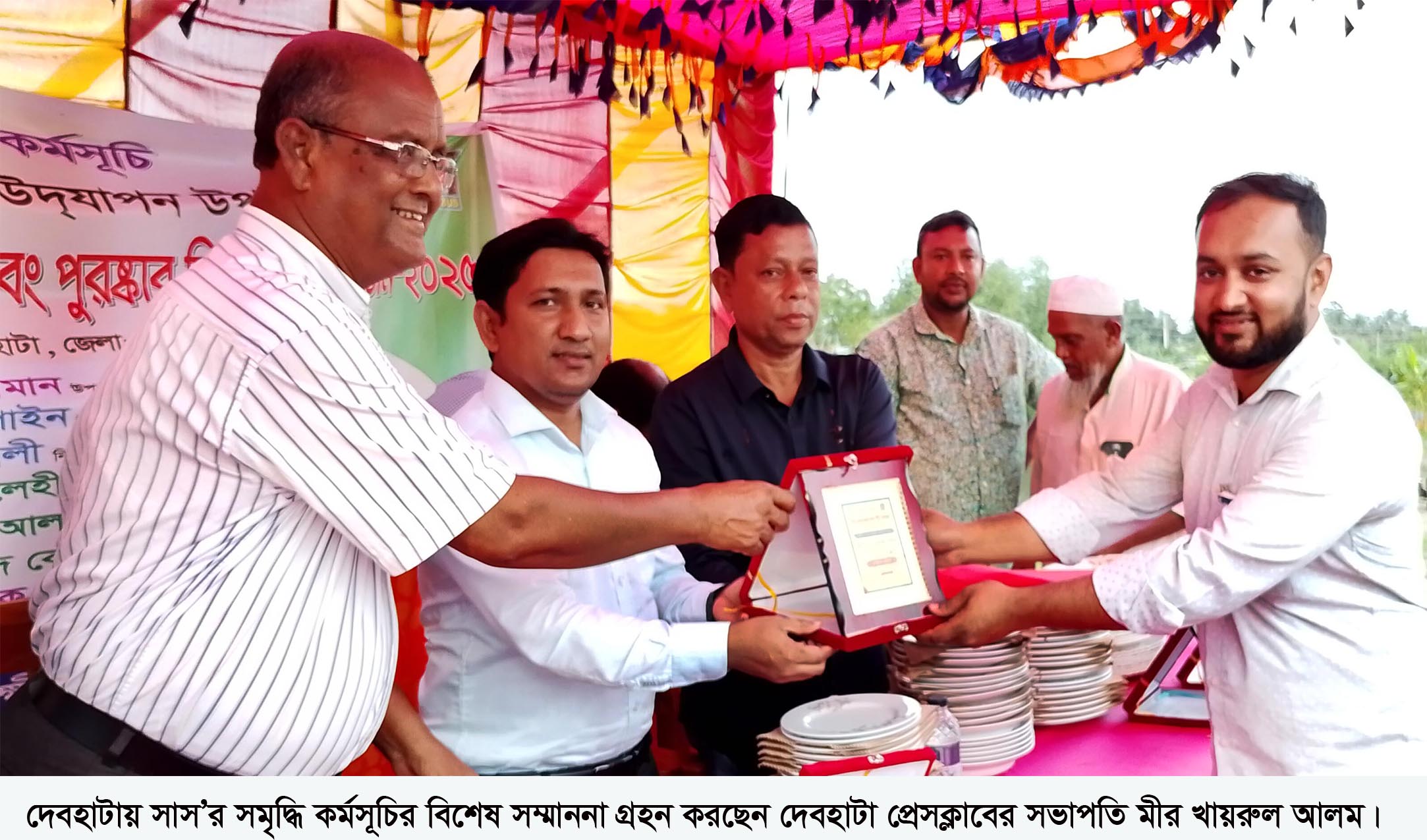 দেবহাটা প্রতিনিধি: দেবহাটার পারুলিয়ায় সাস সমৃদ্ধি কর্মসূচির উদ্যোগে উপজেলা দিবস উদ্যাপন উপলক্ষ্যে ক্রীড়া ও সাংস্কৃতিক প্রতিযোগীতার পুরস্কার বিতরনী অনুষ্ঠান অনুষ্ঠিত হয়েছে। বুধবার (২৮ মে) সাতক্ষীরা উন্নয়ন সংস্থা (সাস) এর বাস্তবায়নে পল্লী কর্ম-সহায়ক ফাউন্ডেশনের সার্বিক সহযোগীতায় পারুলিয়া ইছামতি টেকনিক্যাল অ্যান্ড বিজনেস ম্যানেজমেন্ট কলেজ মাঠে এ অনুষ্ঠান অনুষ্ঠিত হয়। এতে পারুলিয়া ইউপি চেয়ারম্যান গোলাম ফারুক বাবুর সভাপতিত্বে প্রধান অতিথি ছিলেন উপজেলা নির্বাহী অফিসার মো.আসাদুজ্জামান। বিশেষ অতিথি ছিলেন উপজেলা সমাজসেবা অফিসার অধীর কুমার গাইন, সাস’র নির্বাহী পরিচালক শেখ ইমান আলী, ইছামতি টেকনিক্যাল আ্যন্ড বিজনেস ম্যানেজমেন্ট কলেজের অধ্যক্ষ আহছানুস সালেহীন রহিম, দেবহাটা প্রেসক্লাবের সভাপতি মীর খায়রুল আলম, সাধারণ সম্পাদক বায়েজিদ বোস্তামী উজ্জ্বল। সমৃদ্ধি কর্মসূচির উপজেলা কর্মসূচি সমন্বয়কারী আলমগীর হোসেনের পরিচালনায় অন্যান্যদের মধ্যে উপস্থিত ছিলেন সাস এর আঞ্চলিক ব্যবস্থাপক মিজানুর রহমান, আরএম মিজানুর রহমান, সমৃদ্ধি কর্মসূচির সহকারী উপজেলা সমন্বয়কারী শেখ জহিরুল ইসলাম, স্বাস্থ্য কর্মকর্তা শামীমা খাতুন, স্বাস্থ্য পরিদর্শক, সমৃদ্ধি স্কুলের শিক্ষকগন সহ স্থানীয় জনসাধারণ উপস্থিত ছিলেন। অনুষ্ঠান শেষে বিভিন্ন ব্যক্তিদের সামাজিক অবদানের স্বীকৃতি সম্মাননা ক্রেস্ট প্রদান করা হয়। যার মধ্যে সমৃদ্ধি কর্মসূচির সংবাদ প্রকাশে বিশেষ অবদান রাখাতে দেবহাটা প্রেসক্লাবের সভাপতি মীর খায়রুল আলম ও সাধারণ সম্পাদক বায়েজিদ বোস্তামী উজ্জ্বলকে বিশেষ সম্মাননা প্রদান করা হয়। এছাড়া বিভিন্ন ক্রিড়া প্রতিযোগীতায় অংশ নেওয়া বিজয়ীদের মাঝে পুরস্কার প্রদান করা হয়।
