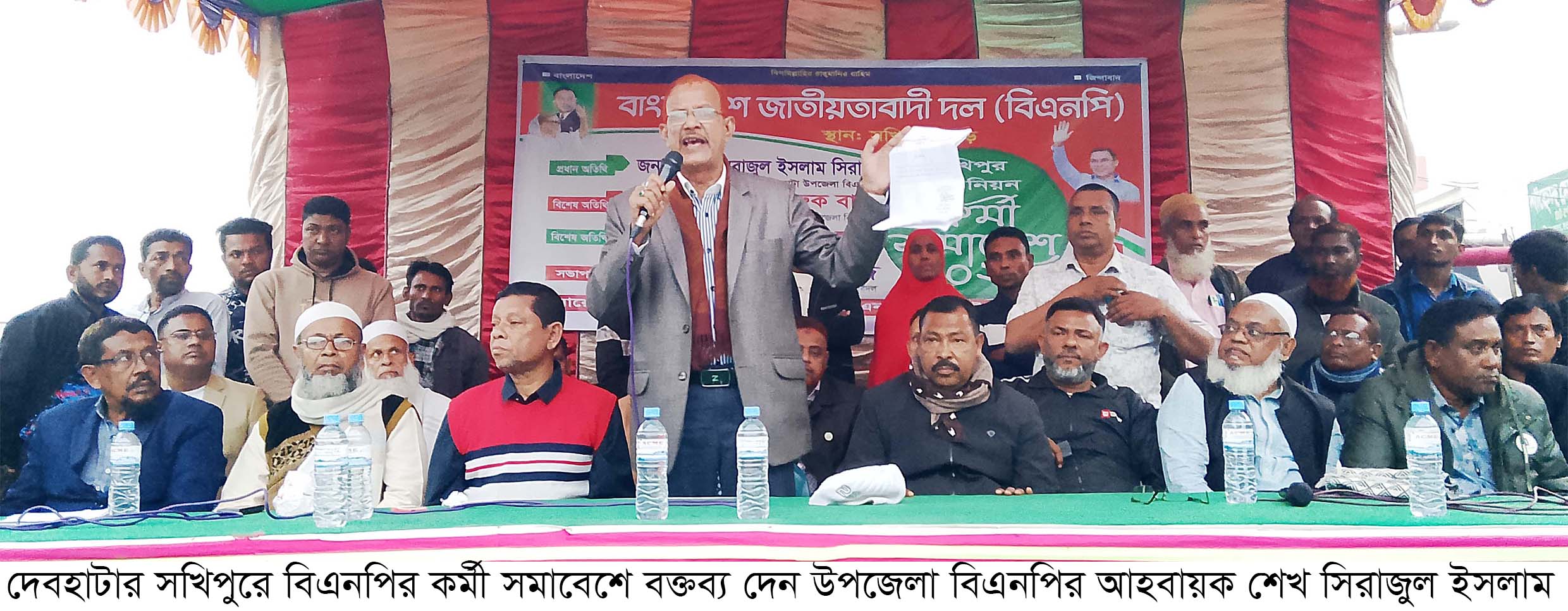 দেবহাটা প্রতিনিধি: দেবহাটার সখিপুরে ওয়ার্ড বিএনপির কর্মী সমাবেশ অনুষ্ঠিত হয়েছে। শনিবার (২৫ জানুয়ারী) সখিপুর মোড়ে এ কর্মী সমাবেশ অনুষ্ঠিত হয়। সখিপুর ইউনিয়ন যুবদলের সাবেক সভাপতি ও ইউপি সদস্য নুর মোহাম্মদের সভাপতিত্বে প্রধান অতিথি ছিলেন দেবহাটা উপজেলা বিএনপির আহবায়ক শেখ সিরাজুল ইসলাম। বিশেষ অতিথি ছিলেন দেবহাটা উপজেলা বিএনপির সাবেক সাধারণ সম্পাদক ও পারুলিয়া ইউপি চেয়ারম্যান গোলাম ফারুক বাবু, নওয়াপাড়া ইউপি সাবেক চেয়ারম্যান রেজাউল করিম, দেবহাটা সদর ইউপি আব্দুল মতিন বকুল। সভায় বক্তব্য দেন সাবেক উপজেলা যুবদলের সাধারণ সম্পাদক আব্দুল হাবিব মন্টু, উপজেলা যুবদলের আহবায়ক কামরুজ্জামান কামরুল, সাবেক থানা যুবদলের সহ-সভাপতি শেখ তরিকুল ইসলাম, উপজেলা মৎস্যজীবি দলের সাধারণ সম্পাদক শাফায়েত হোসেন বাচ্চু, আব্দুল গফফার সানা, দেবহাটা উপজেলা ছাত্রদলের আহবায়ক ইমরান ফরহাদ, উপজেলা শ্রমিকদলের নেতা ইউপি সদস্য মোখলেছুর রহমান, সরকারী কেবিএ কলেজ ছাত্রদলের আহবায়ক নাজমুল হুদা রুন্টি প্রমুখ। সভাটি পরিচালনা করেন দেবহাটা উপজেলা স্বেচ্ছাসেবক দলের সিনিয়র যুগ্ম-আহবায়ক আহম্মাদ আলী ও উপজেলা ছাত্রদলের সাধারণ সম্পাদক এবাদুল ইসলাম ইসলাম।