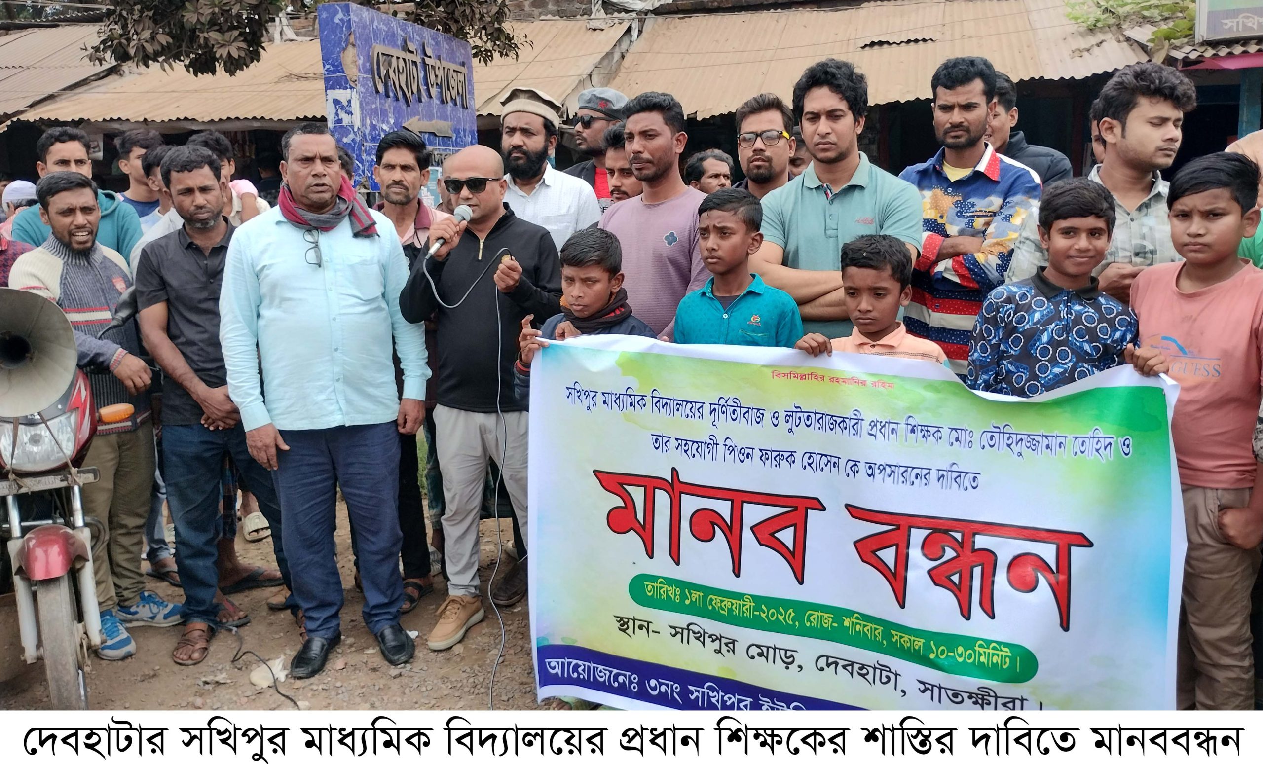 দেবহাটা প্রতিনিধি: দেবহাটার সখিপুর মাধ্যমিক বিদ্যালয়ের প্রধান শিক্ষক শেখ তহিরুজ্জামানের বিরুদ্ধে বিদ্যালয়ের বই বিক্রি, অনিয়ম, দুর্নীতির অভিযোগ এনে শাস্তির দাবিতে মানববন্ধন করেছে স্থানীয়রা। শনিবার (১ ফেব্রুয়ারী) সখিপুর মোড়ে ইউনিয়ন বাসির ব্যানারে এ মানববন্ধন করা হয়।