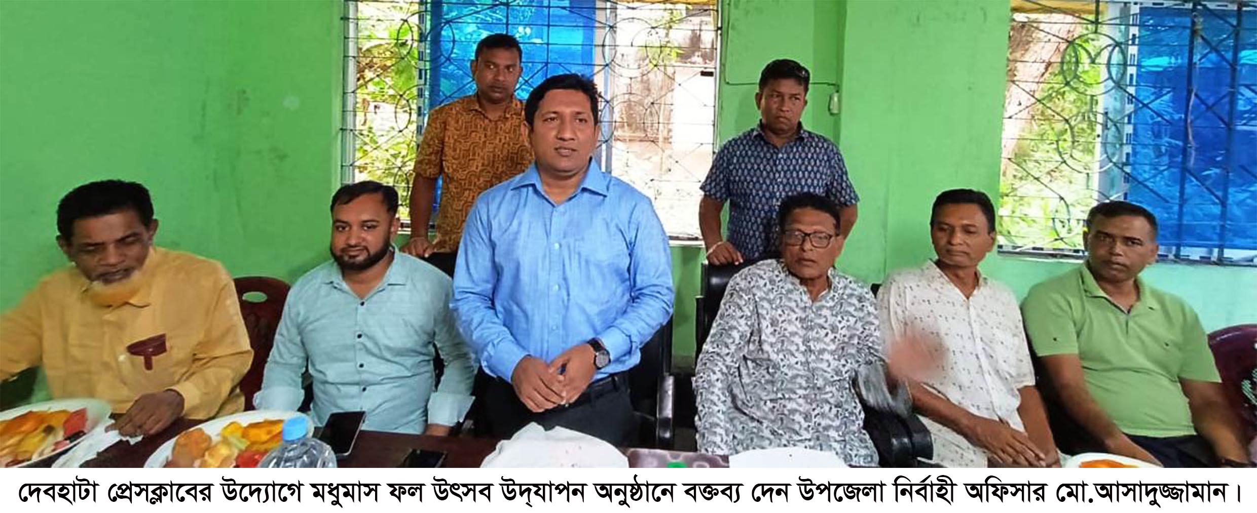 দেবহাটা প্রতিনিধি: দেবহাটা প্রেসক্লাবের উদ্যোগে মধুমাস ফল উৎসব উদ্যাপিত হয়েছে। মঙ্গলবার (২০ মে) প্রেসক্লাবের সভাকক্ষে এ উৎসব পালিত হয়। অনুষ্ঠানে প্রেসক্লাবের সভাপতি মীর খায়রুল আলমের সভাপতিত্বে সাধারণ সম্পাদক বায়েজিদ বোস্তামি উজ্জলের পরিচালনায় প্রধান অতিথি ছিলেন উপজেলা নির্বাহী অফিসার ও ক্লাবের উপদেষ্টা মো.আসাদুজ্জামান। বিশেষ অতিথি ছিলেন জেলা বিএনপি’র সদস্য ও উপজেলা বিএনপি’র সাবেক সদস্য সচিব মহিউদ্দীন সিদ্দিকী, দেবহাটা কলেজের ভারপ্রাপ্ত অধ্যক্ষ হাফিজুর রহমান, প্রেসক্লাবের উপদেষ্টা প্রভাষক আবু তালেব মোল্যা, সরকারি বিবিএমপি ইনস্টিটিউশনের সহকারী প্রধান শিক্ষক শফিকুল ইসলাম। অন্যান্যদের মধ্যে উপস্থিত ছিলেন উপজেলা সমবায় কর্মকর্তা মনোজিত মন্ডল, বিআরডিপি কর্মকর্তা সন্দিপ কুমার মন্ডল, সহকারী প্রোগ্রামার ইমরান হোসেন, পরিসংখ্যান অফিসার কাজী সিদরাতুল মুনতাহা, উপজেলা খাদ্য নিয়ন্ত্রক কর্মকর্তা শাহিনা আকতার, ডিএসবি’র এসআই তুষার হোসেন, অনিকেত ফাউন্ডেশনের পরিচালক অনিকেত আলম বিশ্বাস, প্রেসক্লাবের উপদেষ্টা আব্দুল ওহাব, সহ-সভাপতি সুমন পারভেজ বাবু, যুগ্ম-সম্পাদক লিটন ঘোষ বাপি, সাংগঠনিক সম্পাদক কবির হোসেন, অর্থ সম্পাদক এসকে ওভি, সাহিত্য ও ক্রীড়া বিষয়ক সম্পাদক এসএম নাসির উদ্দীন, তথ্য গবেষণা বিষয়ক সম্পাদক মিজানুর রহমান, নির্বাহী সদস্য রাজু আহম্মেদ, সদস্য আবু হুরাইরা, দিপঙ্কর বিশ্বাস সহ বিভিন্ন পর্যয়ের ব্যক্তিবর্গ। অনুষ্ঠানে দেশীয় ফল আম, কাঁঠাল, কলা, লিচু, সফেদা, জামরুল, জাম, তেতুল, করমোচা, তরমুজ, ডেও (ডেবল), পেয়ারা, তালের শাস, খিরাই সহ বিভিন্ন ফল প্রদর্শন করা হয়।