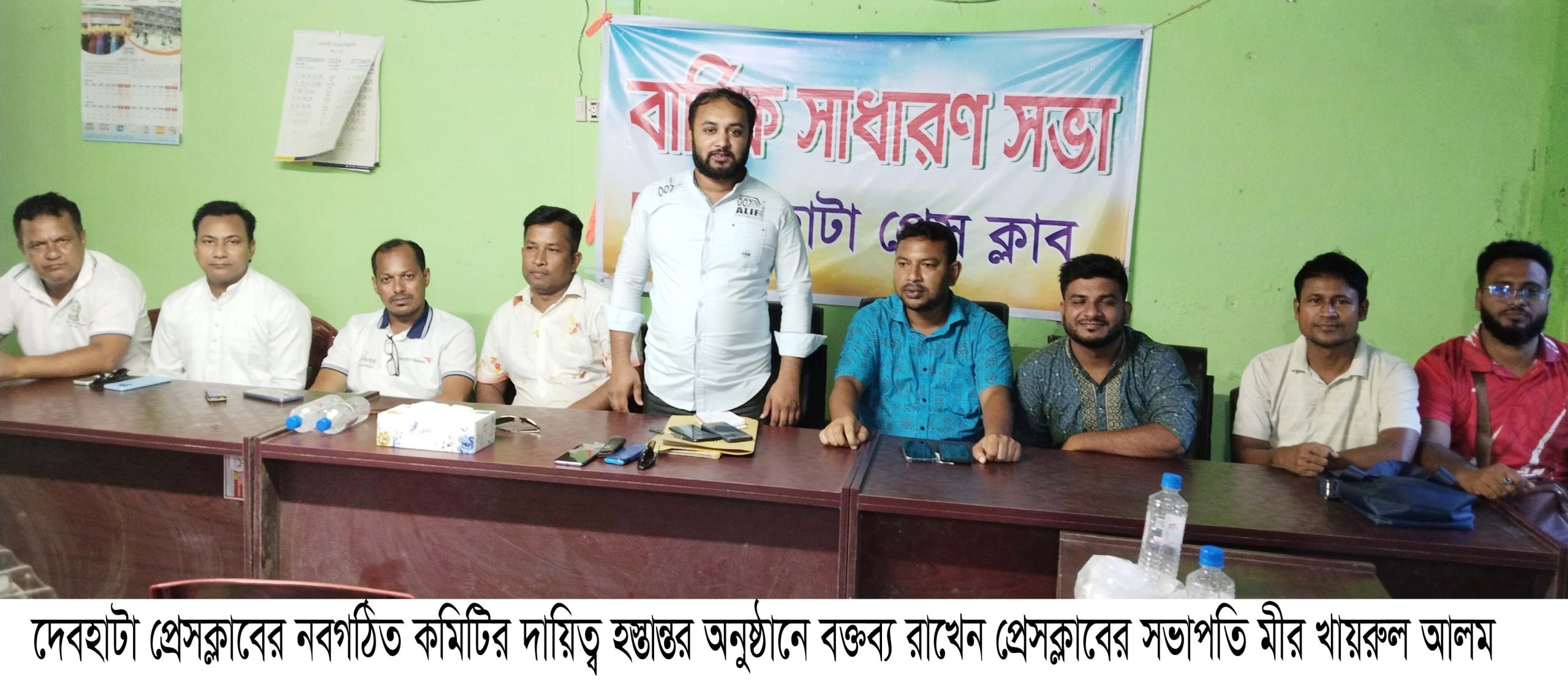 সভায় দেবহাটা প্রেসক্লাবের নব-কমিটির সভাপতি মীর খায়রুল আলমের সভাপতিত্বে সাধারণ সম্পদাক বায়েজিত বোস্তামি উজ্বলের পরিচালনায় এ দায়িত্ব গ্রহণ অনুষ্ঠিত হয়।
