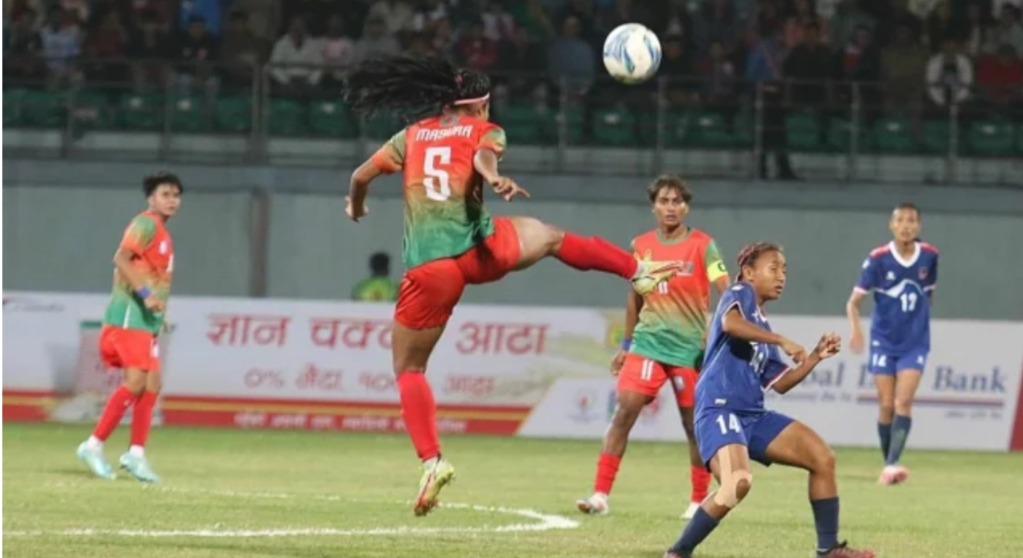 ফাইনালের দেড় ঘণ্টা আগেই কাঠমান্ডুর রঙ্গশালা স্টেডিয়ামে কানায় কানায় পূর্ণ। ‘নেপাল’, ‘নেপাল’ স্লোগান যেমন দিচ্ছিলেন, তেমনি অনেকের হাতেও দেখা যায় নেপালের পতাকা। রঙ্গশালায় উৎসব মুখর পরিবেশে ২ মিনিটেই গোলের সুযোগ পেয়েছিল বাংলাদেশ। নেপালি গোলরক্ষক অঞ্জিলার ভুলের সুযোগে শটও নেন বাংলাদেশের ফরোয়ার্ড তহুরা খাতুন। তবে তহুরার শট বারবার পোস্টে লেগে ফিরে আসে।