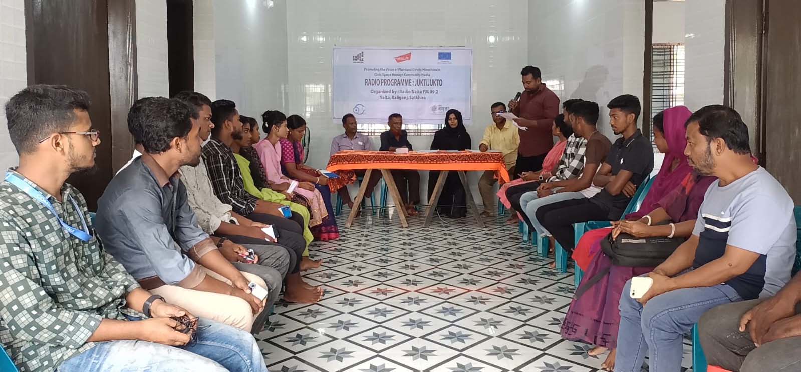 সাতক্ষীরা প্রতিনিধি: ০৪ নভেম্বর-২০২৪ ইং,রোজ:সোমবার সকাল ১০ ঘটিকায় শ্যামনগর উপজেলার কৈখালী রমজাননগর ইউনিয়নে রেডিও নলতার বাস্তবায়নে প্রোমোটিং দ্যা ভয়েস অব এথনিক মাইনোরিটিজ ইন সিভিক স্পেস থ্রি কমিউনিটি মিডিয়া শীর্ষক প্রকল্পের আওতায় স্থানীয় পিছিয়েপড়া মুণ্ডা আদীবাসিদের বাল্যবিবাহ প্রতিরোধ ও জীবন মান উন্নয়ন এর উপর এক সংলাপ অনুষ্ঠান অনুষ্ঠিত হয়। যুক্তিযুক্ত রেডিও সংলাপ অনুষ্ঠানটির আর্থিক সহায়তায় ফ্রিপ্রেস আনলিমিটেড,আর্টিকেল নাইনটিন ও ইউরোপিয়ান ইউনিয়ন এবং উন্নয়ন মূলক সংগঠন সমষ্ঠির বাস্তবায়নে।অনুষ্ঠানটির আয়োজনে রেডিও নলতা ৯৯.২ এফ এম।উক্ত সংলাপ অনুষ্ঠানে উপস্থিত ছিলেন, শ্যামনগর উপজেলা মহিলা বিষয়ক অধিদপ্তরের সিনিয়র কনসালটেন্ট সাবরিন সুলতানা।রমজাননগর ইউনিয়ন পরিষদের ইউপি সদস্য ও প্যানেল চেয়ারম্যান মো: আব্দুস সালাম। মুণ্ডা আদিবাসীদের গৌত্র প্রধান গোপাল চন্দ্র মুণ্ডা। এছাড়া এথনিক মাইনোরিটিজ ইন সিভিক স্পেস থ্রি কমিউনিটি মিডিয়া শীর্ষক এই প্রকল্পের আওতায় প্রশিক্ষণ প্রাপ্ত ১৫ জন মুণ্ডা ইয়ুথ লিডার। এসময় আরও উপস্থিত ছিলেন,রেডিও নলতার টেকনিক্যাল অফিসার সাব্বির হোসাইন।হিসাব রক্ষক কাম মার্কেটিং অফিসার আক্তারুজ্জামান মিলন। সিনিয়র অনুষ্ঠান প্রযোজক প্রতিমা রানী।অনুষ্ঠান উপস্থাপক আব্দুস সালাম (স্বেচ্ছাসেবক)। সমগ্র অনুষ্ঠানটি পরিচালনা করেন,রেডিও নলতার সহকারি স্টেশন ম্যানেজার মো: মামুন হোসেন। উক্ত অনুষ্ঠানে মুণ্ডা আদিবাসীদের মধ্যে বাল্যবিবাহের হার বৃদ্ধি,বাল্যবিবাহ প্রতিরোধে পিছিপেড়া মুণ্ডা আদিবাসীদের ও ইয়ুথ লিডারদের ভূমিকা, জনসচেতনতা সৃষ্টি জোরদারকরণ,স্থানীয় জনপ্রতিনীধিদের ভূমিকা, গৌত্র প্রধানদের ভূমিকা।মহিলাবিষয়ক অধিদপ্তরের উঠান বৈঠকসহ বাল্যবিবাহ প্রতিরোধে সচেতনতামূলক নানাবিধ কার্যক্রমের উপর সংলাপ অনুষ্ঠান অনুষ্ঠিত হয়। উল্লেখ্য, উক্ত প্রকল্পের আওতায় স্থানীয় পিছিয়েপড়া মুণ্ডা আদিবাসীদের পিছিয়েপড়ার কারণগুলো থেকে প্রাথমিকভাবে ০৭টি বিষয় নির্বাচিত করে রেডিও সংলাপ অনুষ্ঠানের মাধ্যমে সমস্যা সমাধানের সম্ভাব্য উপায়গুলো নিয়ে আলাপ আলোচনা করা হয়।সবশেষে,সংলাপ অনুষ্ঠানে আমন্ত্রিত অতিথীবৃন্দ, মুণ্ডা ইয়ুথ লিডারসহ সকলকে ধন্যবাদ জ্ঞাপন ও কৃতজ্ঞতা প্রকাশ এবং সকলের সুস্বাস্থ্য ও মঙ্গল কামনা করে অনুষ্ঠান সমাপ্ত ঘোষনা করা হয়।