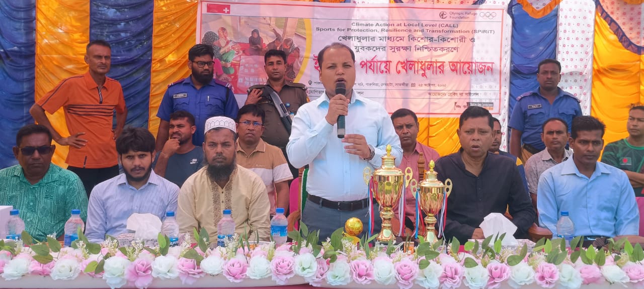স্টাফ রিপোর্টার: দেবহাটায় খেলাধুলার মাধ্যমে কিশোর- কিশোরী ও যুবকদের সুরক্ষা নিশ্চিতকরণে খেলাধুলার আয়োজন করা হয়েছে। শনিবার (২৫ অক্টোবর) দেবহাটা উপজেলার পারুলিয়া জেলিয়া পাড়া ফুটবল মাঠে টিডিএইচ ফাউন্ডেশনের সহযোগিতায় এবং ব্রেকিং দ্য সাইলেন্সের আয়োজনে খেলাধুলার মাধ্যমে কিশোর- কিশোরী ও যুবকদের সুরক্ষা নিশ্চিতকরণে সারাদিন ব্যাপি বিভিন্ন খেলাধুলা ও পুরস্কার বিতরণ অনুষ্ঠান অনুষ্টিত হয়েছে। অনুষ্ঠানে পারুলিয়া ইউনিয়ন পরিষদের চেয়ারম্যান গোলাম ফারুক বাবুর সভাপতিত্বে প্রধান অতিথি হিসেবে উপস্থিত ছিলেন উপজেলা নির্বাহী অফিসার মিলন সাহা।