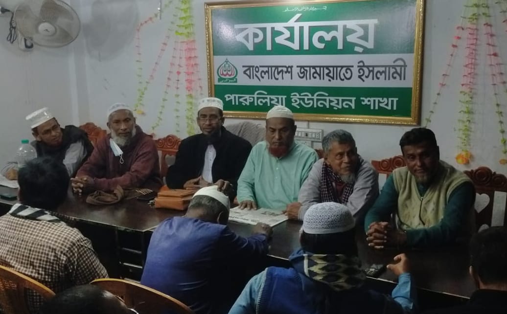 মঙ্গলবার (২৬ নভেম্বর) রাত ৮ঘটিকায় পারুলিয়া ইউনিয়ন জামায়াত অফিসে এ সভা অনুষ্ঠিত হয়। সভায় ইউনিয়ন জামায়াতের আমীর (ভারপ্রাপ্ত) মাওলানা আবু ইউসুফ’র সভাপতিত্বে প্রধান অতিথির বক্তব্যে রাখেন, উপজেলা জামায়াতের আমীর বিশিষ্ট শিক্ষাবিদ ও সমাজসেবক মাওলানা অলিউল ইসলাম।
