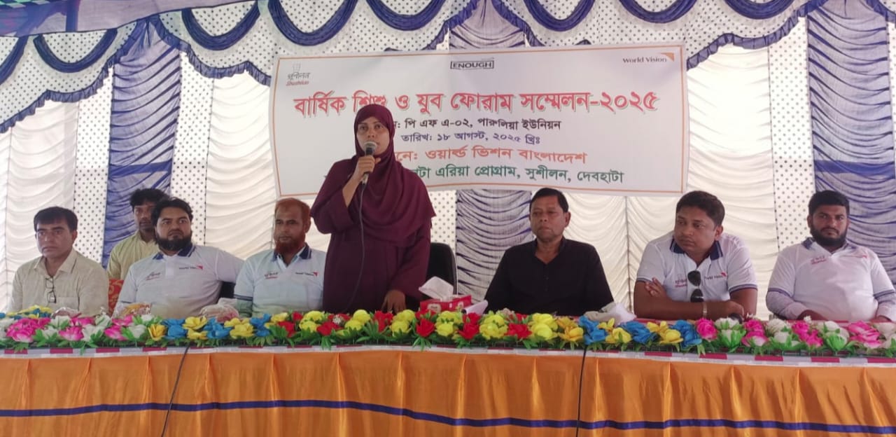 দেবহাটা প্রতিনিধি: দেবহাটায় সুশীলনের দেবহাটা এরিয়া প্রোগ্রামের আয়োজনে ও ওয়ার্ল্ড ভিশন বাংলাদেশের অর্থায়নে বার্ষিক শিশু ও যুব ফোরাম সম্মেলন-২৫ অনুষ্ঠিত হয়েছে। সোমবার ১৮ আগষ্ট দুপুর সাড়ে ১২টায় পারুলিয়া ইছামতী টেকনিক্যাল স্কুল এন্ড কলেজের সামনে অনুষ্ঠিত উক্ত অনুষ্ঠানে সভাপতিত্ব করেন পারুলিয়া ইউপি চেয়ারম্যান গোলাম ফারুক বাবু। প্রধান অতিথি হিসেবে দেবহাটা উপজেলা মহিলা বিষয়ক কর্মকর্তা নাসরিন জাহান। বিশেষ অতিথি ছিলেন যথাক্রমে দেবহাটা রিপোর্টার্স ক্লাবের সভাপতি আর.কে.বাপ্পা, ইছামতী টেকনিক্যাল কলেজের অধ্যক্ষ আহছানুস সালেহীন, দেবহাটা উপজেলা মাধ্যমিক শিক্ষা অফিসের একাডেমিক সুপারভাইজার মিজানুর রহমান ও দেবহাটা উপজেলা যুব উন্নয়ন অধিদপ্তরের সহকারী কর্মকর্তা তরিকুল ইসলাম। শুরুতে স্বাগত বক্তব্য রাখেন সুশীলনের কমিউনিটি ডেভেলপমেন্ট অফিসার মিজানুর রহমান। সুশীলনের ন্যাশনাল চাইল্ড প্রোগ্রামের ভাইস প্রেসিডেন্ট অনামিকা পালের সার্বিক সঞ্চালনায় এসময় অনুষ্ঠানে অন্যান্যের মধ্যে উপস্থিত ছিলেন দেবহাটা প্রেসক্লাবের সাংগঠনিক সম্পাদক কবির হোসেন, দেবহাটা রিপোর্টার্স ক্লাবের সাংগঠনিক সম্পাদক কে এম রেজাউল করিম, সুশীলনের বিভিন্ন দায়িত্বপ্রাপ্ত কর্মকর্তা ও উপজেলার ৫টি ইউনিয়নের শিশু ও যুব ফোরামের কমিটির কর্মকর্তাবৃন্দ। শুরুতে পট গান ও বিভিন্ন পোস্টারিংয়ের মাধ্যমে আগত অতিথিদেরকে সুশীলনের পক্ষ থেকে এই শিশু ও যুব ফোরামের কার্য্যক্রম সম্পর্কে অবহিত করা হয়। এই কমিটি শিশু শ্রম বন্ধ, বাল্য বিবাহ প্রতিরোধ, সামাজিক অবক্ষয় রোধ, শিক্ষার্থীদেরকে মনিটরিংয়ের মাধ্যমে সচেতন ও স্বাবলম্বী হতে সহায়তা করাসহ বিভিন্ন কাজ করছে বলে জানানো হয়।