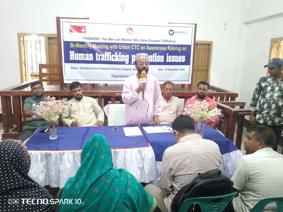 ‎ ১৮ই সেপ্টেম্বর রোজ বৃহস্পতিবার সকাল ১০.৩০ টায় রূপান্তরের আয়োজনে কালীগঞ্জের ধলবাড়িয়া ইউনিয়ন মানব পাচার প্রতিরোধ কমিটির দ্বিমাসিক সভা অনুষ্ঠিত হয় । ইউ পি  চেয়ারম্যান আলহাজ্ব গাজী শওকত হোসেন এর সভাপতিত্বে  থানা ভারপ্রাপ্ত কর্মকর্তা মোহাম্মদ মিজানুর রহমান প্রধান অতিথি হিসেবে উপস্থিত থেকে মানব পাচার প্রতিরোধ ও নিরাপদ অভিবাসন বিষয়ক তথ্য কর্ণার ও প্রবাসী কল্যাণ ডেক্স উদ্বোধন করেন। জেলা সিটিআইপি সদস্য সোহেল আহমেদের পরিচালনায় বিগত সভার রেজুলেশন পাঠ করেন ইউনিয়ন মানব পাচার প্রতিরোধ কমিটির সদস্য সচিব ও ইউ পি সচিব খান আহাদুর রহমান।