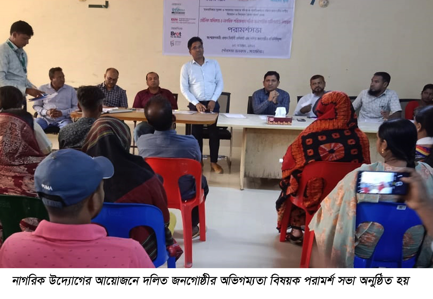 তালা প্রতিনিধি: নাগরিক উদ্যোগ বাংলাদেশের দলিত জনগোষ্ঠীর অধিকার সুরক্ষা এবং তাদের প্রতি বিদ্যমান বৈষম্য লাঘবে বিভিন্ন কার্যক্রম পরিচালনা করে আসছে। এরই ধারাবাহিকতায় সংস্থাটি ‘মানবাধিকার সুরক্ষা ও সহায়তার মাধ্যমে দলিত ও সামাজিক ভাবে বঞ্চিত জনগোষ্ঠীর দারিদ্র বিমোচন ও বিদ্যমান বৈষম্য লাঘব’ প্রকল্প খুলনা, সাতক্ষীরা জেলা সদর ও পৌরসভা এবং তালা উপজেলাসহ বাংলাদেশের ৯টি জেলায় বাস্তবায়ন হচ্ছে। প্রকল্পের মাধ্যমে শিক্ষা কার্যক্রম, মানবাধিকার এবং শহরের স্যানিটেশন কর্মীদের পেশাগত সুরক্ষা বিষয়ক সচেতনতামূলক কার্যক্রমসহ জাতীয় পর্যায়ের নীতি-নির্ধারকদের সাথে অ্যাডভোকেসি কার্যক্রম বাস্তবায়ন হচ্ছে। উক্ত প্রকল্পের লক্ষ্য, উদ্দেশ্য এবং কার্যক্রমসমূহ স্থানীয় প্রশাসনকে অবহিতকরণ এবং মৌলিক অধিকার ও নাগরিক পরিষেবায় দলিত জনগোষ্টির অভিগম্যতা বিষয়ক পরামর্শ এবং সংশ্লিষ্ট সরকারি দপ্তরের সাথে সমন্বয় ও যোগাযোগ শক্তিশালী করার এক অ্যাডভোকেসি সভা সোমবার (১০ নভেম্বর ) সকালে সাতক্ষীরা পৌরসভা হলরুমে অনুষ্টিত হয়। সভায় সভাপতিত্ব করেন, বিডিইআরএম সাতক্ষীরা জেলা কমিটির সভাপতি দুলাল দাস। প্রধান অতিথি হিসেবে উপস্থিত ছিলেন সাতক্ষীরা পৌরসভার প্রধান নির্বাহী কর্মকর্তা মো. আসাদুজ্জামান। নাগরিক উদ্যোগ’র ফিল্ড কো-অডিনেটর জুয়েল সরকার’র পরিচালনায় এসময় প্রজেক্ট অফিসার সুমিত্র সরকারসহ সাতক্ষীরা পৌরসভার কর্মকর্তাগন, দলিত ও বিডিইআরএম’র নেতৃবৃন্দ, নারী নেতৃবৃন্দ, এবং সুশীলসমাজ নেতৃবৃন্দ উপস্থিত ছিলেন।