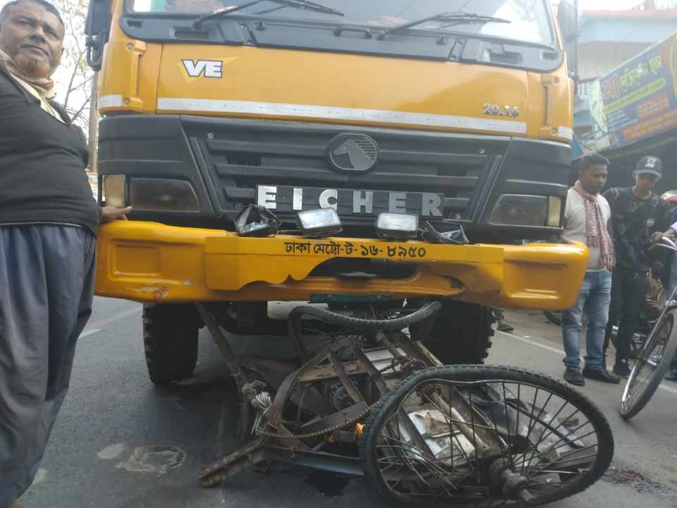 জেলা ( প্রতিনিধি ): যশোরের মনিরামপুর বাজারস্থ হাসপাতাল মোড়ে দুপুর ২.৩০ মিনিটের দিকে মালবাহী ট্রাক ও ইঞ্জিন ভ্যানের মুখোমুখি সংঘর্ষে ২জন নিহত ও ২জন গুরুতর আহত হয়েছেন। দুর্ঘটনার সময় ভ্যানে দুইজন মহিলা ও একটি শিশু ছিল। স্থানীয় সূত্রে জানা গেছে যশোরগামী মালবাহী ট্রাকের সাথে বিপরীত দিক থেকে আসা একটি ইঞ্জিন ভ্যান সড়ক পারাপার হওয়ার চেষ্টাকালে মুখোমুখি সংঘর্ষ হয়। সংঘর্ষের ফলে ভ্যানটি চুর্ণ-বিচুর্ণ হয়ে যায়। ট্রাকের চাকায় পিষ্ট হয়ে ঘটনাস্থলেই ভ্যানচালক ও হাসপাতালে নেওয়ার পর অপর একজন যাত্রী নিহত হন। নিহতরা হলেন, মনিরামপুর উপজেলার ফেদায়পুর গ্রামের মোসলেম হোসেন (৫৫) ও মুন্সিখানপুর গ্রামের রবিউল ইসলাম রবির স্ত্রী রুপা খাতুন (৪৫)। আহতরা হলেন, নড়াইল জেলার জাহির হোসেন’র স্ত্রী মিম খাতুন (২২) ও তার ০১বছর বয়সী শিশু কন্য। তাদের অবস্থা গুরুত্বর হওয়ায় তাদেরকে যশোর ২৫০ শয্যা জেনারেল হাসপাতালে রেফার্ড করা হয়েছে। দুর্ঘটনার খবর পেয়ে ফায়ার সার্ভিস কর্মী ও পুলিশ ঘটনাস্থলে এসে লাশ উদ্ধার করেন। মনিরামপুর উপজেলা স্বাস্থ্য কমপ্লেক্সের জরুরী বিভাগের কর্তব্যরত চিকিৎসক সাইফউদ্দিন বলেন, হাসপাতালে আনার আগেই দুইজনের মৃত্যু হয়েছে। গুরুতর আহত মা ও শিশুকে যশোর ২৫০ শয্যা জেনারেল হাসপাতালে রেফার্ড করা হয়েছে। মনিরামপুর ফায়ার সার্ভিস এন্ড সিভিল ডিফেন্স কর্মকর্তা সাফায়াত হোসেন বলেন, মালবাহী ট্রাকের নিচ থেকে একজনের লাশ উদ্ধার করা হয়েছে। আহদের হাসপাতালে পাঠানোর পর রুপা নামে অপর এক গৃহবধু মারা যান। মনিরামপুর থানার উপ-পরিদর্শক অমিত কুমার দাস জানান, স্থানীয়দের সহযোগিতায় য়াতক ট্রাকটি আটক করা হয়েছে। ট্রাক চালক ঘটনাস্থল থেকে পালিয়েছেন। এ ব্যাপারে আইনগত ব্যবস্থা প্রক্রিয়াধীন।