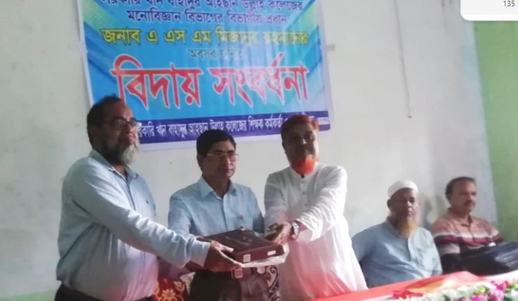 বৃহস্পতিবার ১৪ নভেম্বর কলেজের আইসিটি হল রুমে সরকারি খান বাহাদুর আহছান উল্লাহ কলেজের অধ্যক্ষ প্রফেসর অলোক কুমার ব্যানার্জীর সভাপতিত্বে অনুষ্ঠানে সংবর্ধিত অতিথি হিসেবে বক্তব্য রাখেন পিআরএল এ যাওয়ার পূর্বে শেষ কর্মদিবসে উপনীত হওয়া মনোবিজ্ঞান বিভাগীয় প্রধান আলহাজ্জ এ এস এম মিজানুর রহমান।