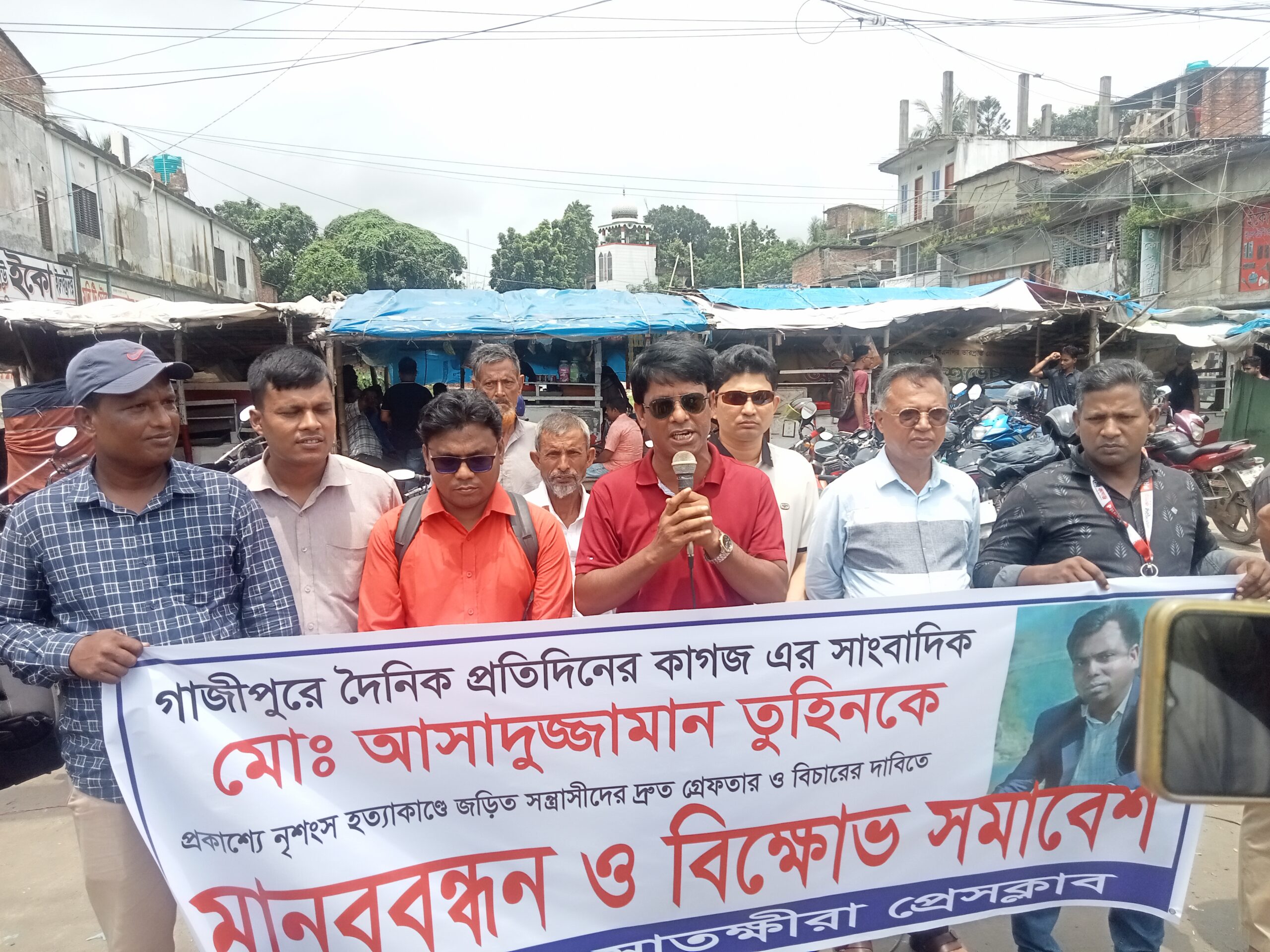 মানববন্ধনে বক্তারা বলেন, সাংবাদিক তুহিনকে প্রকাশ্যে হত্যার ঘটনা দেশের গণমাধ্যম ও মতপ্রকাশের স্বাধীনতার জন্য বড় হুমকি।  সাংবাদিকদের নিরাপত্তা নিশ্চিত করা রাষ্ট্রের দায়িত্ব। সাংবাদিকরা সত্য প্রকাশে ভয় না পেয়ে কাজ করবেন এমন পরিবেশ তৈরি করতে হবে। পুলিশের নিষ্ক্রিয়তায় আজকে দেশে অস্থিতিশীল পরিস্থিতির সৃষ্টি হয়েছে।দেশে আইনশৃঙ্খলা পরিস্থিতির হয়েছে  অবণতি। পুলিশ জনগণের টাকায় বেতন নিচ্ছে অথচ সেবা দিতে পারছে না। জুলাই অভ্যুত্থানের পরে আমরা ভেবেছিলাম পুলিশের কার্যক্রম পরিবর্তন হবে, কিন্তু একটুও বদলায়নি। তারা নানা অনিয়ম দুর্নীতি করছে। আমরা সাংবাদিক আসাদুজ্জামান তুহিনসহ সকল সাংবাদিক হত্যাকাণ্ডের বিচার দাবি করছি। এই বিচার দ্রুত না আগামীতে কঠোর কর্মসূচি ঘোষনা করা হবে বলে তারা হুশিয়ারি দেন।  মানববন্ধনে জেলার বিভিন্ন প্রিন্ট ও ইলেকট্রিক মিডিয়ায় কর্মরত  সাংবাদিকরা উপস্থিত ছিলেন।
