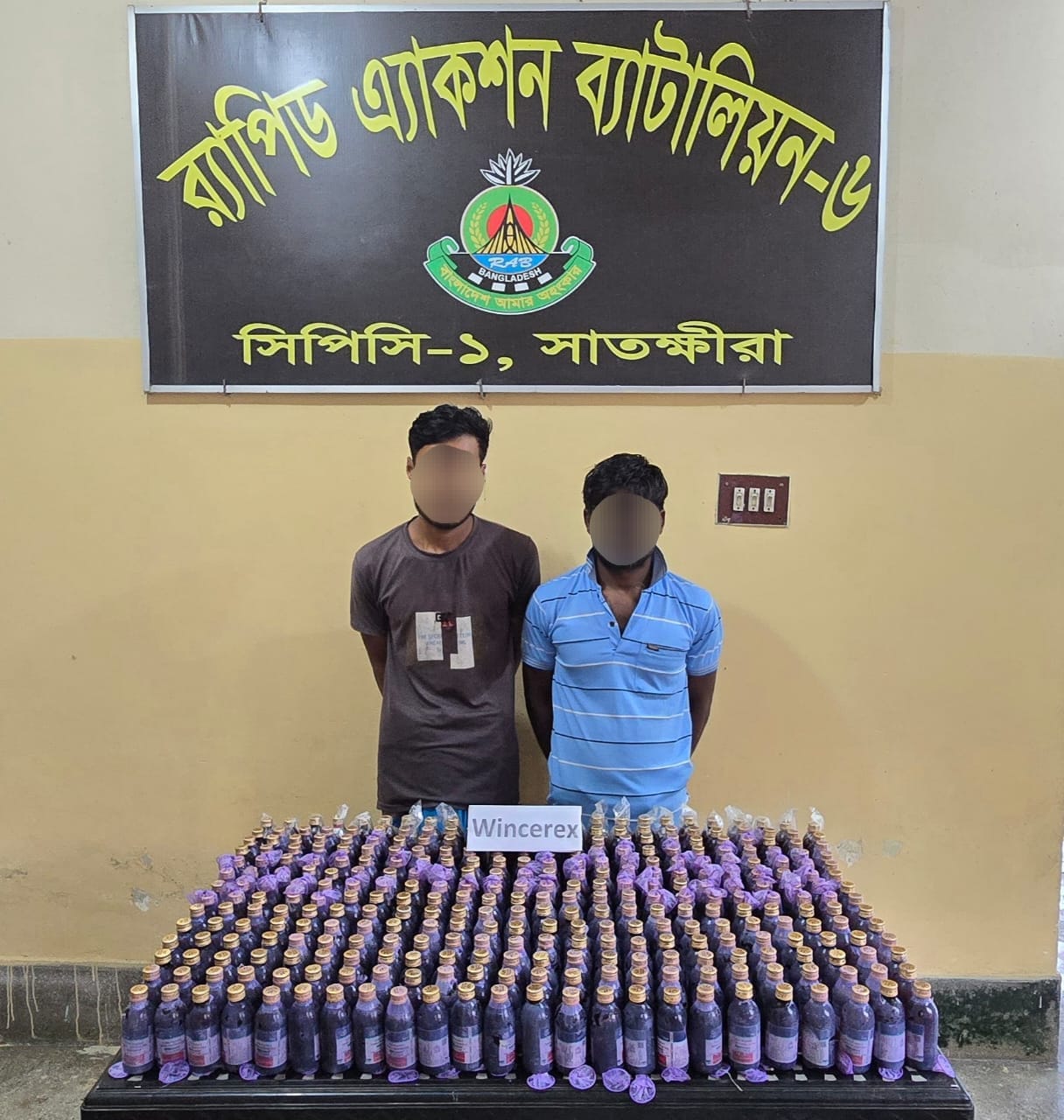 প্রাপ্ত সংবাদের ভিত্তিতে ১১ জুলাই ২০২৫ ভোরবেলা উক্ত এলাকায় অভিযান পরিচালনা করা হয়। এসময় আসামি শরিফুল ইসলাম ওরফে কালু এবং মোঃ আব্দুল কাদেরকে গ্রেপ্তার করা হয় এবং উপস্থিত সাক্ষীদের সামনে গ্রেপ্তারকৃত আসামীদের তথ্যের ভিত্তিতে হাড়দ্দহা মাঝেরপাড়ার পলাতক আসামী রকিব হোসেন এর ইটের দেয়াল বেষ্টিত এক তলা বসতঘরের সিড়ির নিচ হতে ৩৫৮ বোতল উইন্সেরেক্স (ফেন্সিডিল সাদৃশ্য) নেশা জাতীয় মাদকদ্রব্য উদ্ধার করে।