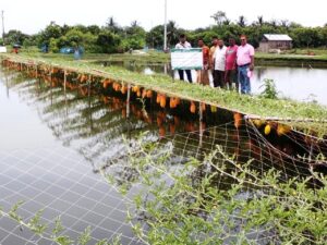 মীর খায়রুল আলম: ঘেরের পানিতে ছুটে চলেছে বিভিন্ন প্রজাতির মাছ। আর পানির উপরে মাচায় ঝুলছে শত শত তুরমুজ। এ যেনো এক মন ভাল করা দৃশ্য। বলছিলাম সাতক্ষীরা জেলার দেবহাটায় অফসিজনের তরমুজ চাষের কথা। যা সাড়া ফেলেছে কৃষকদের মাঝে। অল্প খরচে এ তরমুজ চাষ করে লাভবান হচ্ছেন কৃষক। খোঁজ নিয়ে জানা গেছে, মৎস্য ঘেরের ভেঁড়িতে পতিত জমি হিসাবে পরীক্ষামূলকভাবে এ তরমুজের চাষ শুরু হয়। যা বর্তমানে সফলতা পেয়েছেন অনেক কৃষক।
