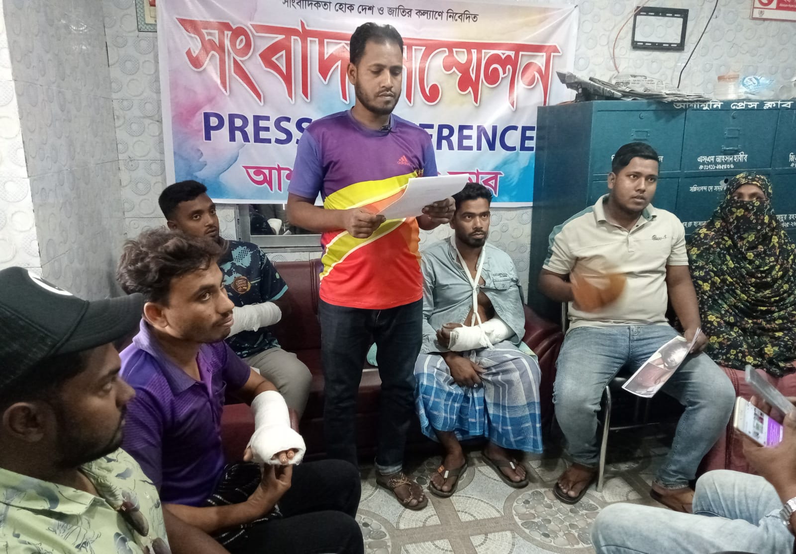 বৃহস্পতিবার(১মে )দুপুরে আশাশুনি প্রেসক্লাবে সংবাদ সম্মেলনে লিখিত বক্তব্য পাঠ করেন আশাশুনি গ্রামের মৃত আফতাব উদ্দিনের ছেলে হামলায় গুরুতর আহত মুরশিদ আলম।