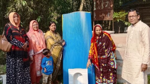 তালায় দরিদ্র নারীদের মাঝে স্বাস্থ্যসম্মত টয়লেট নির্মান সামগ্রী বিতরন