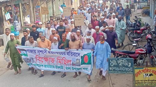 ফিলিস্তিনে বর্বর ইসরাইলী আগ্রাসনের প্রতিবাদে তালায় বিক্ষোভ