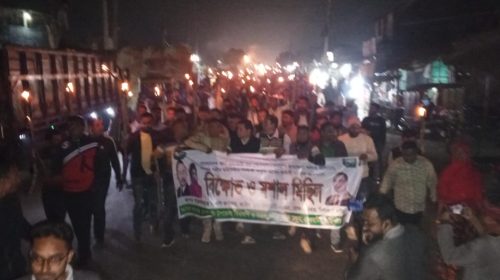দেবহাটায় বিএনপির কমিটি বাতিলের দাবিতে মশাল মিছিল ও সমাবেশ