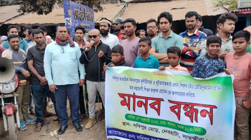 দেবহাটার সখিপুর মাধ্যমিক বিদ্যালয়ে প্রধান শিক্ষকের শাস্তির দাবিতে মানববন্ধন