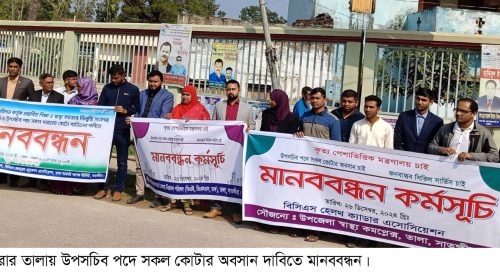 উপসচিব পদে কোটার অবসান দাবিতে তালায় মানববন্ধন