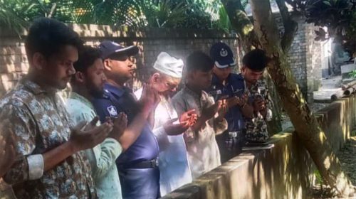 শহিদ আসিফের কবর জিয়ারত করলেন দেবহাটা থানা ওসি হযরত আলী