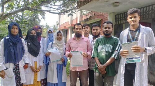সাতক্ষীরায় মেডিকেল টেকনোলজি শিক্ষার্থীদের ৬ দফা দাবিতে লিফলেট বিতরণ