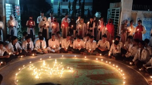 ৬ দফা দাবিতে মেডিকেল টেকনোলজি ও ফার্মেসি ছাত্রদের মোমবাতি প্রজ্জলন