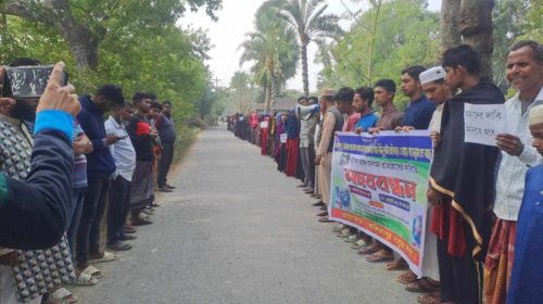 কালিগঞ্জের কৃষ্ণনগরে অবৈধ যানবাহন চলাচল বন্ধের দাবীতে মানববন্ধন