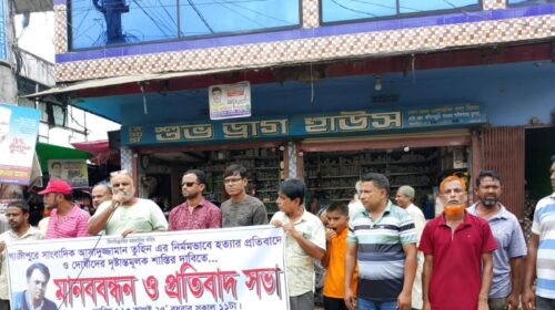 সাংবাদিক তুহিন হত্যার প্রতিবাদে কপিলমুনিতে মানববন্ধন