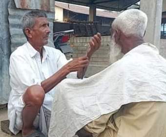 হারিয়ে যাচ্ছে পিঁড়িতে বা খাটে বসে চুল দাঁড়ি কাটার দৃশ্য !