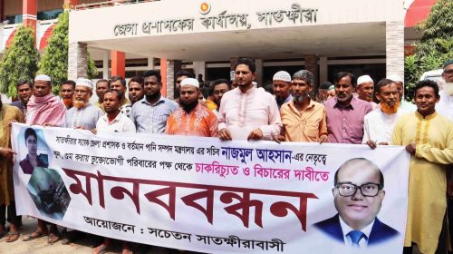 সাতক্ষীরার সাবেক ডিসির শাস্তির দাবীতে মানববন্ধন