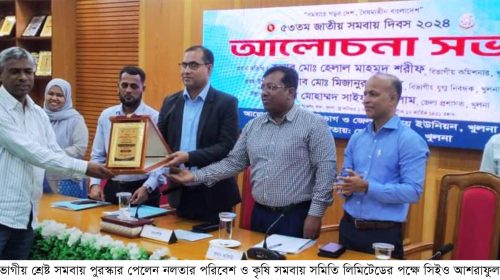 বিভাগীয় শ্রেষ্ট সমবায় পুরস্কার পেলেন নলতার পরিবেশ ও কৃষি সমবায় সমিতি